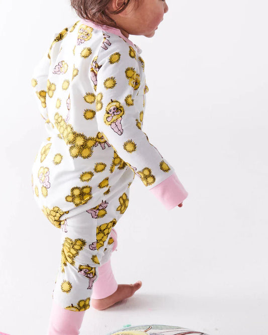 May Gibbs x Kip&Co Wattle Dance White Organic Long Sleeve Zip Romper